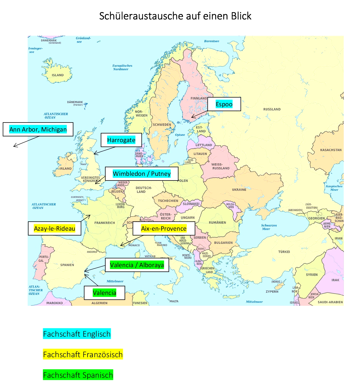 Schüleraustausche sind ein Angebot unserer Schule an aufgeschlossene, interessierte Kinder und Jugendliche, die ihre sprachlichen und kulturellen Kompetenzen vertiefen möchten. Wir halten Schüleraustausche für eine wichtige Bereicherung des Schullebens und glauben, dass sie sich positiv im Sinne unseres Leitbildes auf die persönliche Entwicklung unserer Schülerinnen und Schüler auswirken können. Austausche motivieren zu einer intensiveren Beschäftigung mit der Fremdsprache, bieten die Möglichkeit, länderübergreifende Freundschaften zu knüpfen, ermöglichen echtes interkulturelles Lernen und können so zu einer positiven Ausprägung von Werten und Toleranz beitragen.